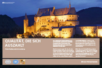 Die DZ PRIVATBANK hat einen ausgezeichneten Ruf in Sachen Vermögensverwaltung. Vor allem Privatkunden mit einem komplex aufgestellten Vermögen profitieren von der Kompetenz der Berater, die ihre langjährige Erfahrung im internationalen Bereich auf Fachgebieten wie Steuerrecht, Erbschaftsangelegenheiten, Stiftungen usw. einbringen. Mit exzellenten Bildmotiven aus Luxemburg visualisieren wir den hohen Standard, den die Bank ihren Private-Banking-Kunden bietet.