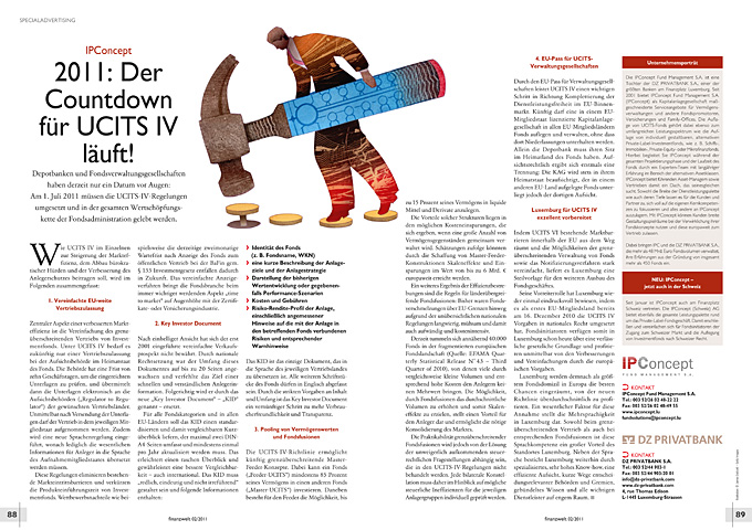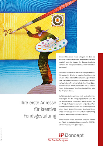 Um einen Fonds aufzulegen, braucht man nicht nur eine Fondsidee, von der man sich gute Marktchancen verspricht, sondern viel Manpower, Kompetenz und Erfahrung für die Umsetzung. Viele Fondsgesellschaften ersparen sich diesen Aufwand. Sie wenden sich lieber an Spezialisten wie IP Concept. Deren Fonds-Experten übernehmen alle Arbeiten - angefangen von der Konzeption über die Ausgestaltung der Konditionen bis hin zur Abwicklung der Genehmigungsformalitäten. Durch unsere Positionierung als kreative Fonds-Manufaktur und einen entsprechend kreativen, sehr individuellen Auftritt hat sich IP Concept schnell als einer der führenden Anbieter auf diesem Gebiet etabliert.