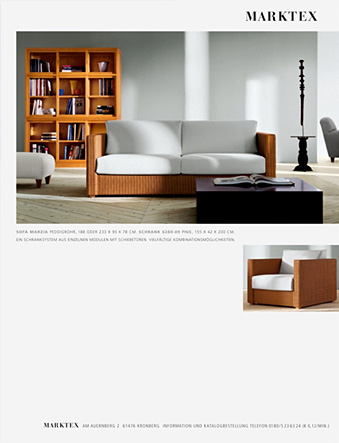 Edles Mobiliar braucht einen entsprechend hochwertigen Werbeauftritt. Die zurückhaltende Gestaltung und nur wenige Zeilen Text geben den edlen Designstücken den nötigen Freiraum, um für sich selbst zu sprechen.